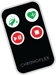 Bij het ChronoFlex Medical systeem wordt ook een afstandsbediening geleverd. Op deze afstandsbediening bevinden zich vier knoppen waarmee het gehele systeem bedient kan worden.